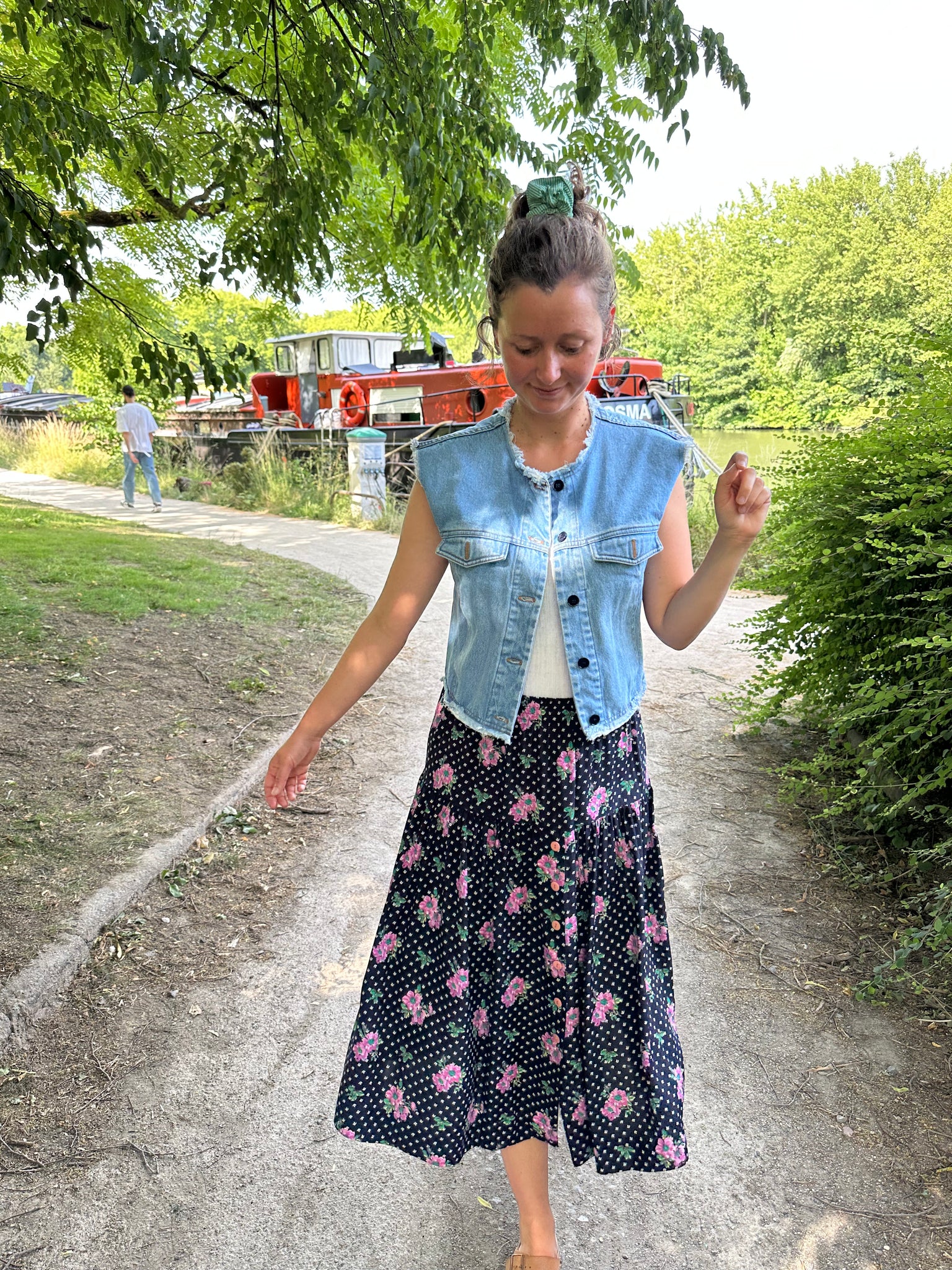 Une jolie jupe midi fleurie. Il s’agit d’une jupe vintage qui conviendra du bon 36 au petit 40. Taille élastique.