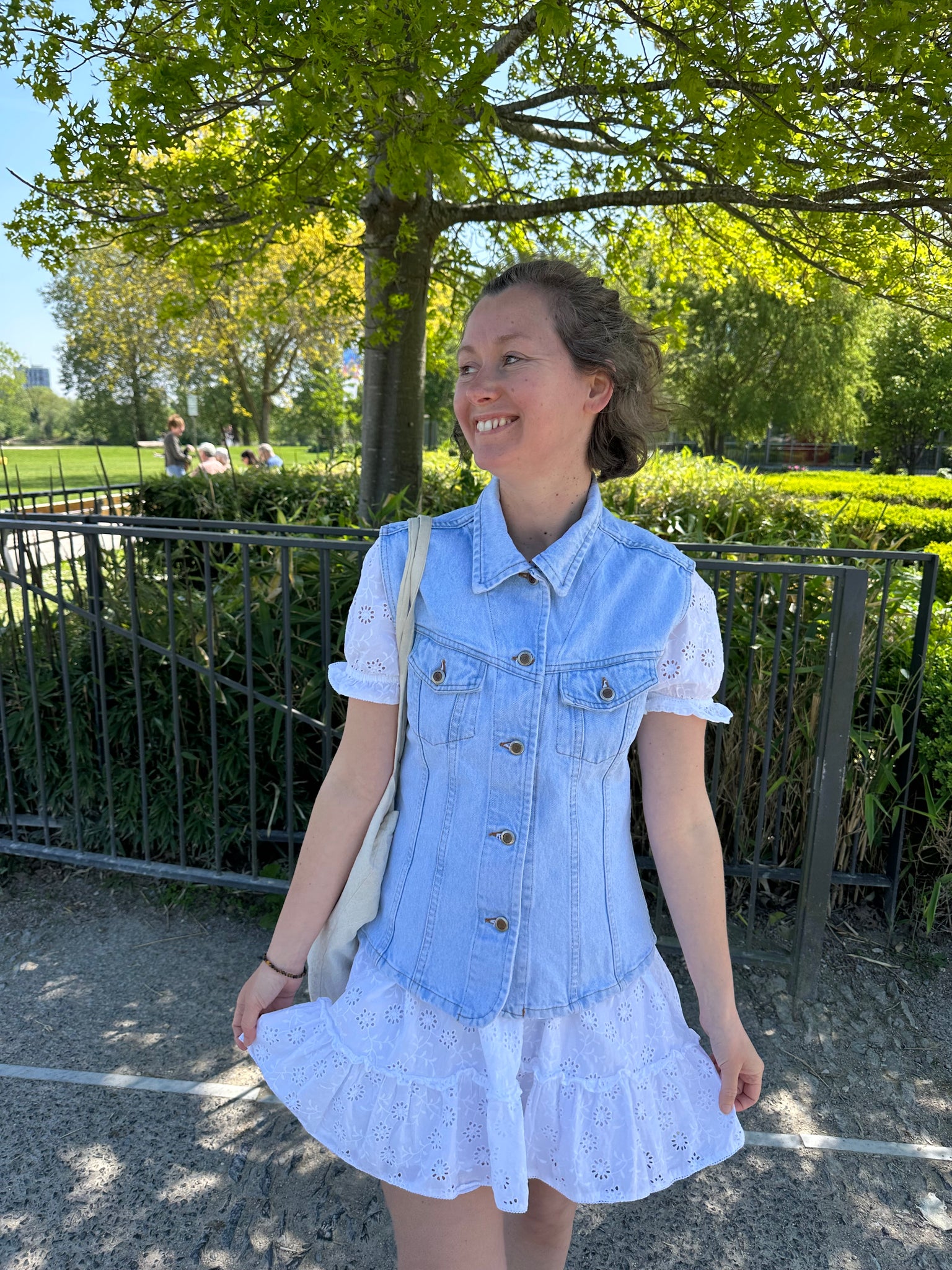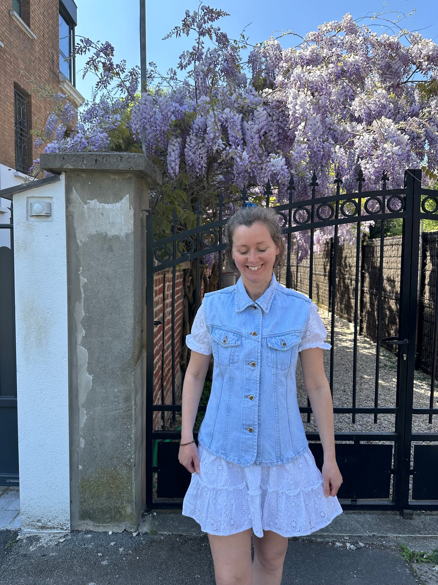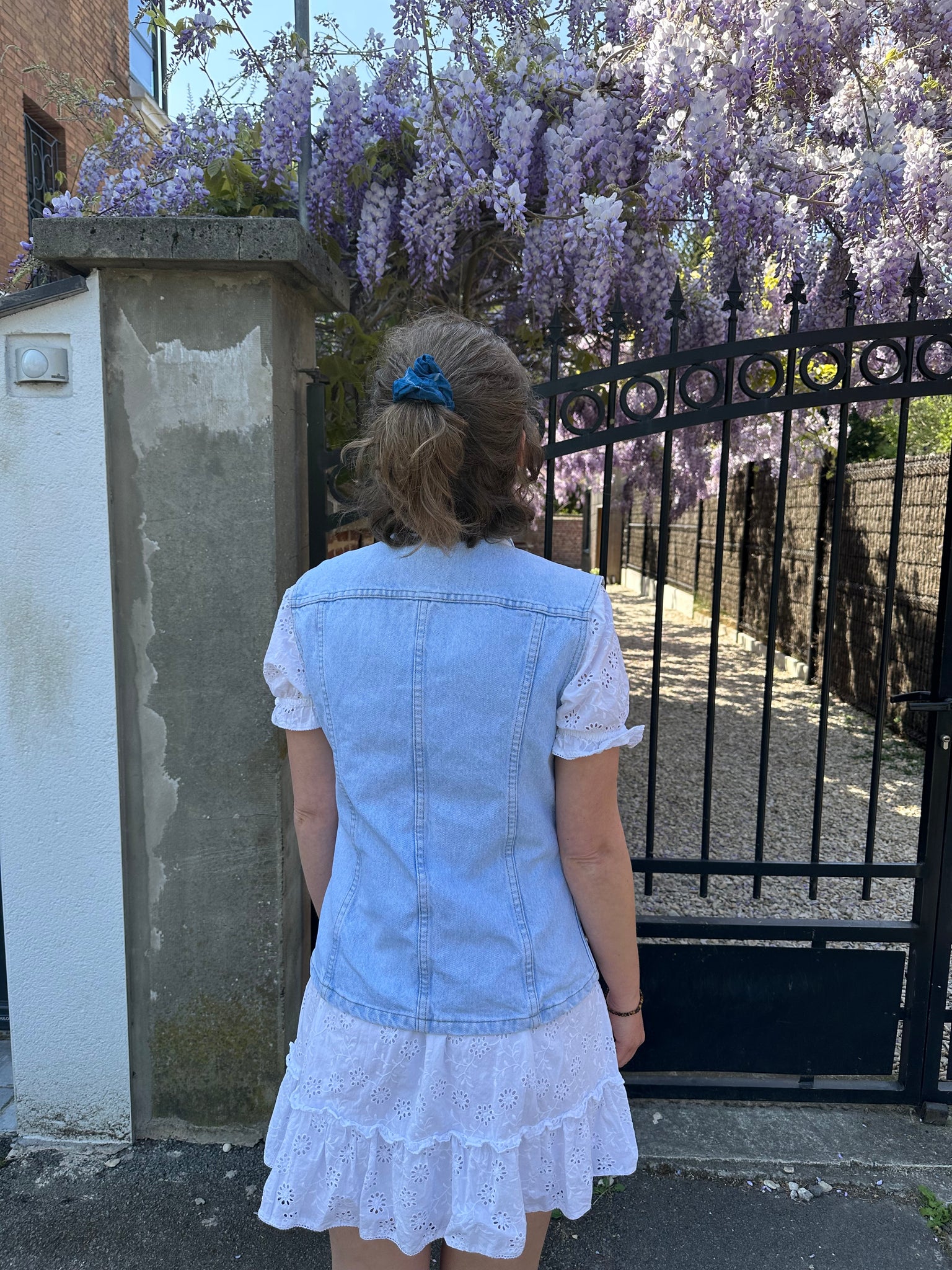 Une jolie veste en jeans vintage sans manche, à la coupe flatteuse (légèrement ceintrée).