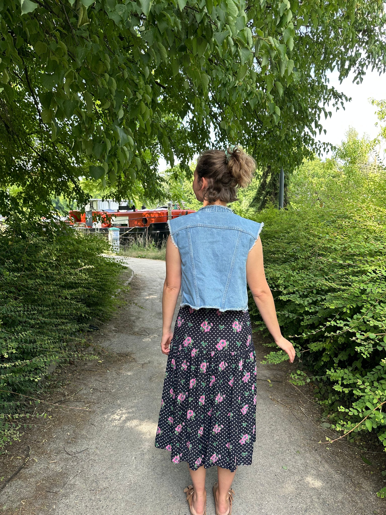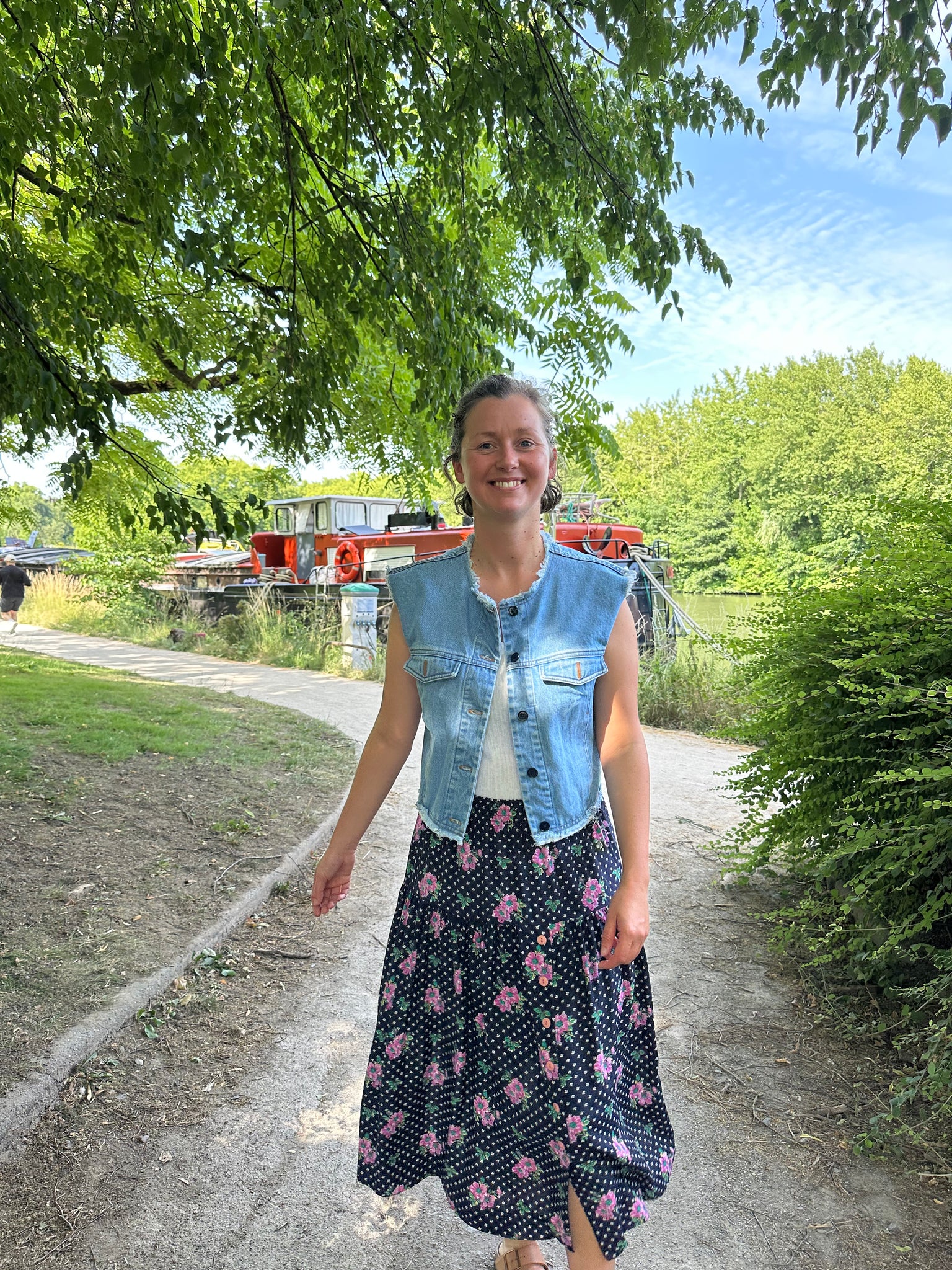 Une petite veste en jeans sans manche qui conviendra du 36 au bon 38.